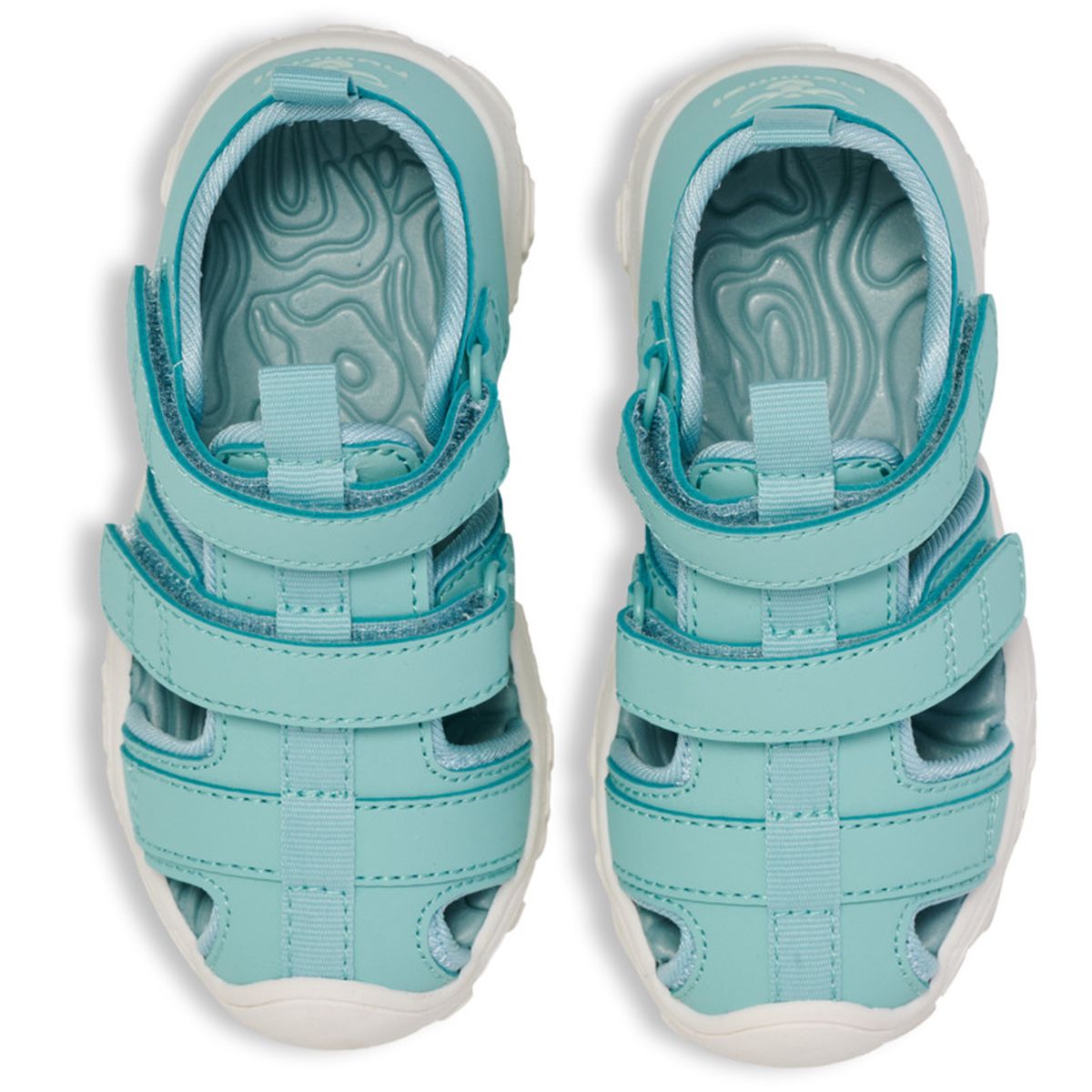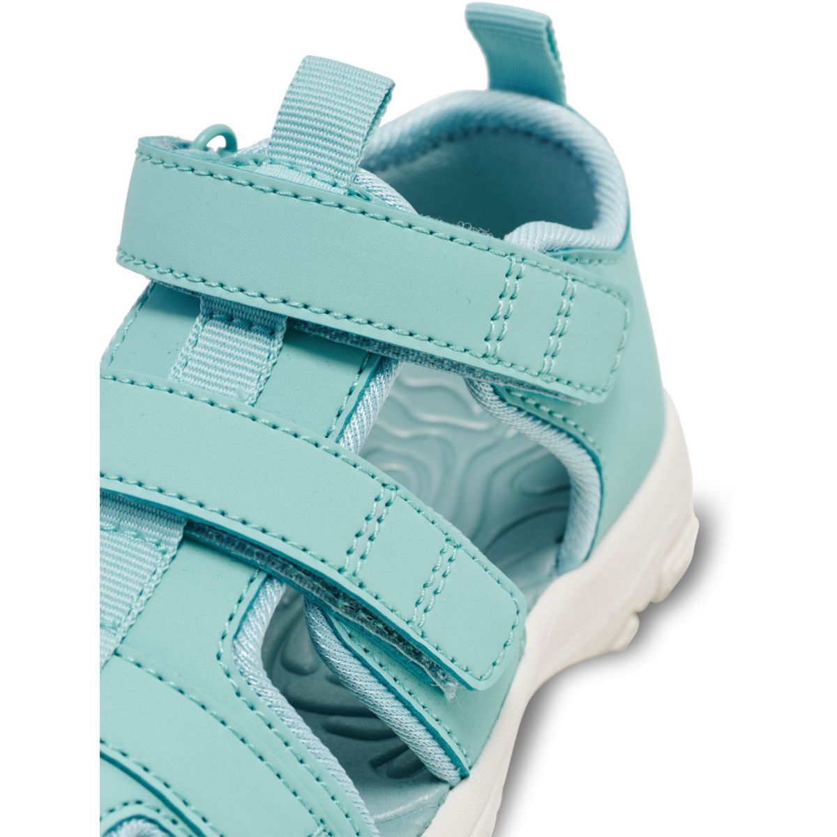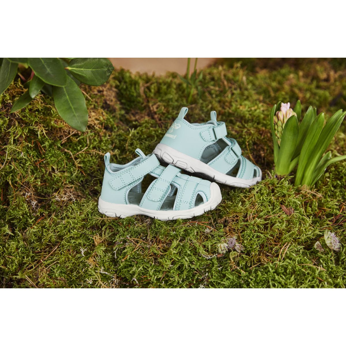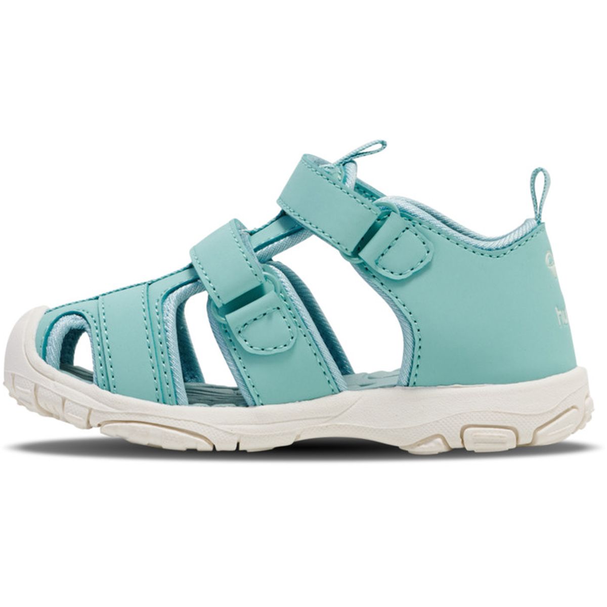 Praktiske sandaler til de små drenge og piger i turkisfarvet nuance med lukket tå fra Hummel.